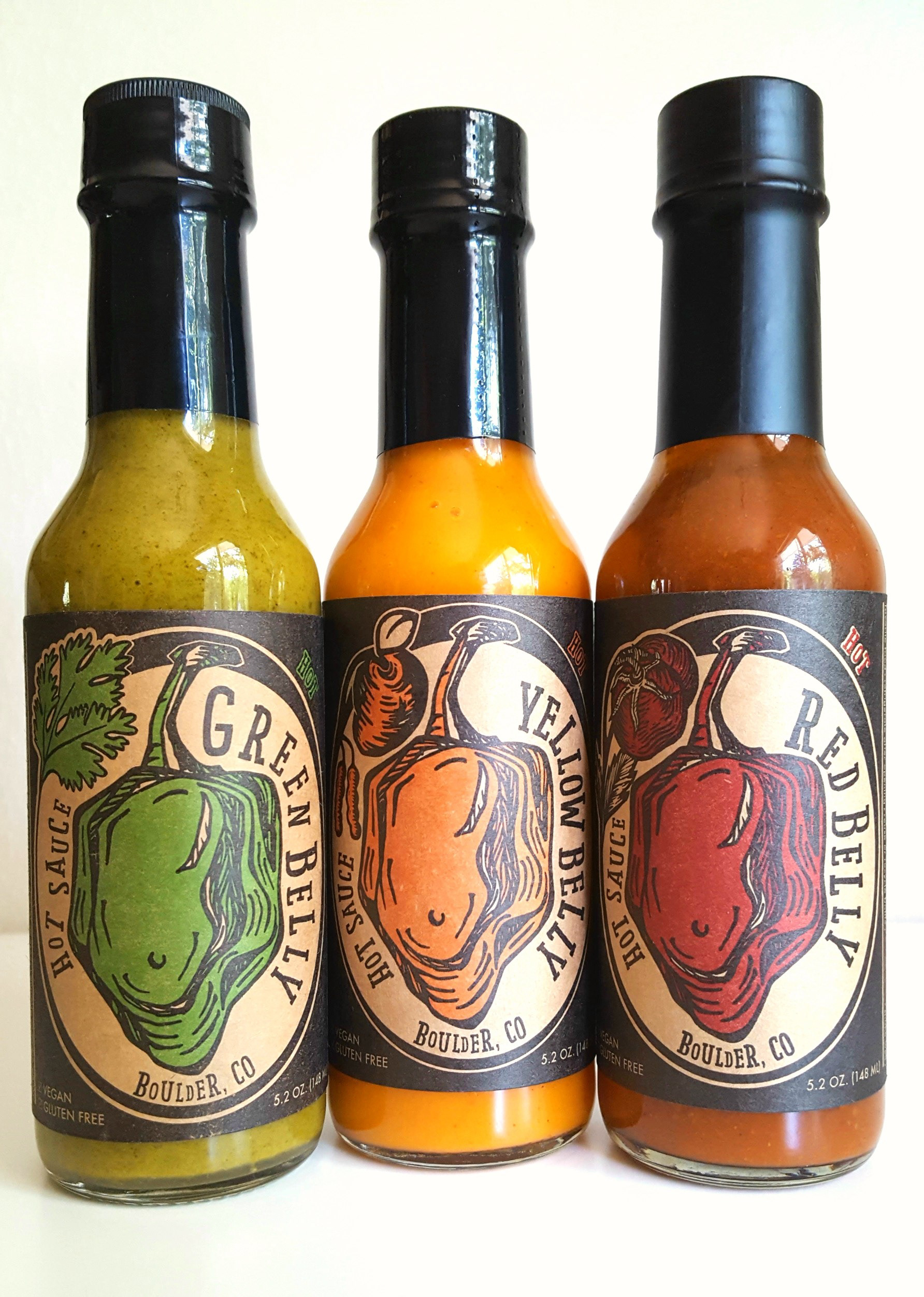 The farm bus is stocked with the green, red, and yellow belly sauces!