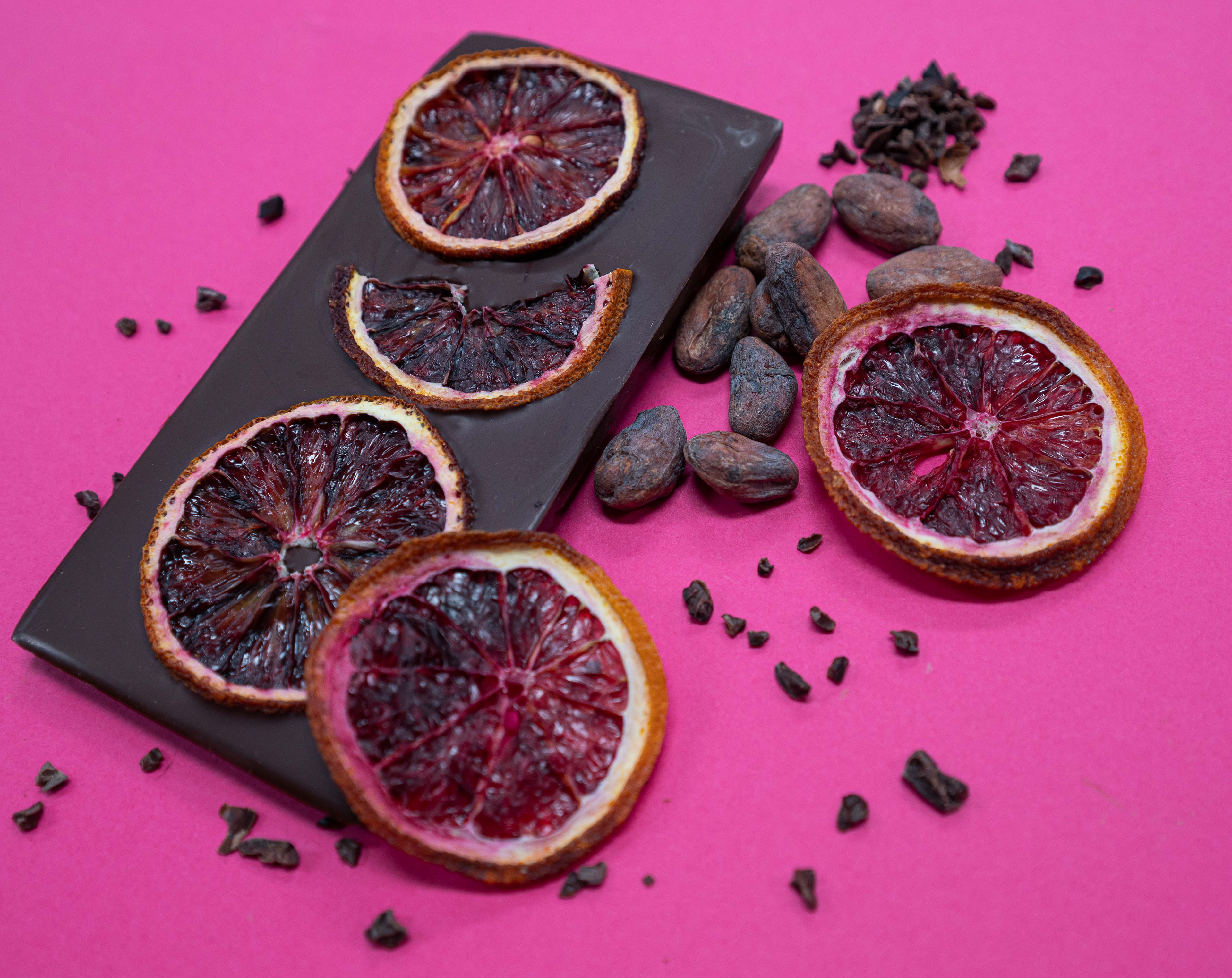 72% Dark: Plain, Sea Salt, Cacao Nibs, Raspberries, Cherries, Blueberries, and Coconut
