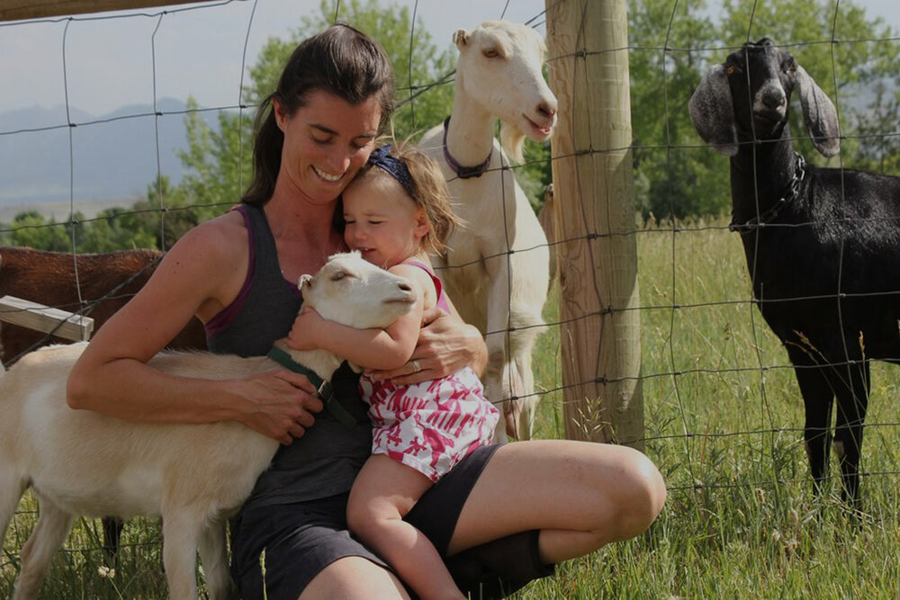 This is Amanda Adare, her daughter, and her goats from Table Mountain Farm. This farm is located in an incredibly beautiful area just north of Boulder. There are rolling hills, vibrant green pastures, colorful birds, and a very healthy ecosystem at work.